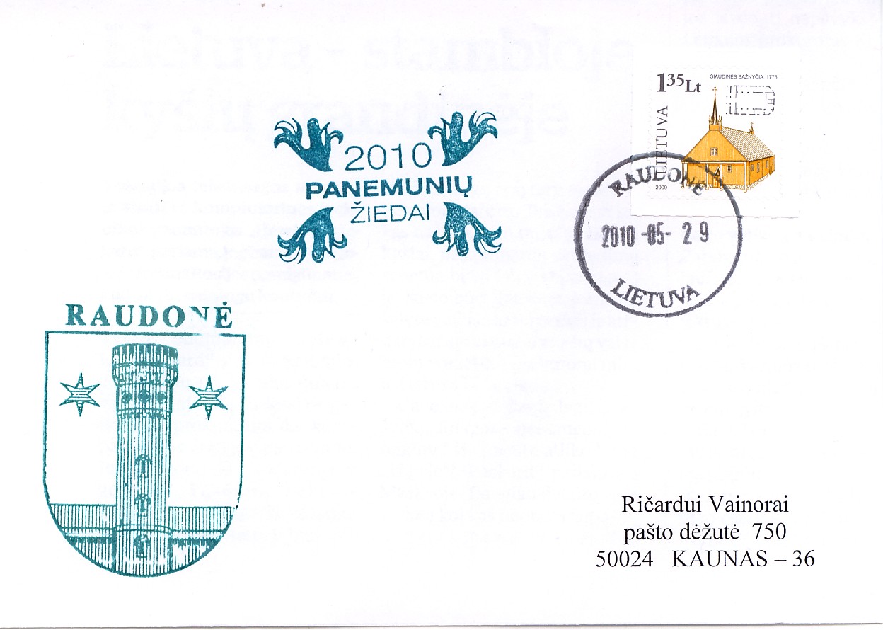 Šiandien Raudonėje vyksta šventė "Panemunių žiedai", ta proga šalia pilies atidarytas laikinas paštas. Laikinas paštas naudoja Raudonės pašto kalendorinį antspaudą, taip pat du suvenyrinius antspaudus (pagamintus pašto!): vieną su šių metų data, kitas jau buvo naudojamas ir pernai, ir dar anksčiau. Lietuvos paštas apie šį antspaudavimą filatelistų neinformavo, greičiausiai nieko nerašys ir "Ekspresinformacija".
