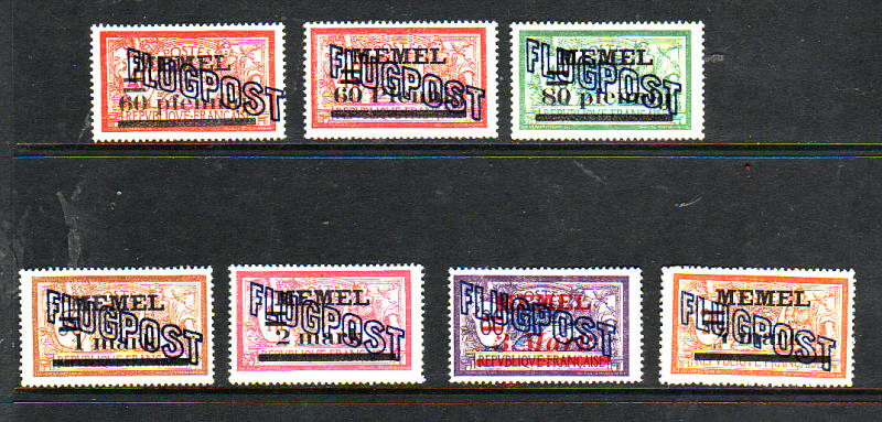 1923 Lietuva paskelbia apie Klaipėdos krašto prijungimą, greitai išleidžiami ir perspausdinti Lietuvos pašto ženklai su užrašais "Klaipėda (Memel)", paskui išleidžiami ir originalūs ženklai, o dar paskui - išleidžiami originaliųjų ženklų perspaudai su nominalais lietuviška valiuta (litai, centai).