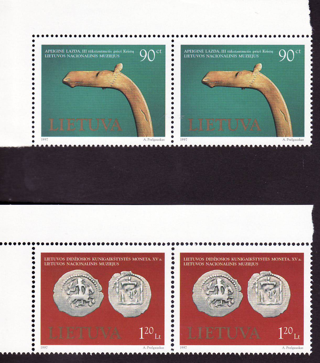 dešinys. Turėtų dar būti trečias, su abiem kraštais perforuotais,