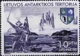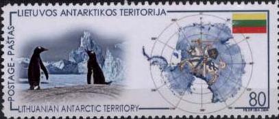 Failo aprašymas: [Lietuvos Antarktikos teritorija]. 2004 m. išleistas ženklas, kuriame vaizduojama Lietuvos vėliava ir Vytis Antarktikoje. Ženklas atspausdintas ant kreidinio popieriaus.