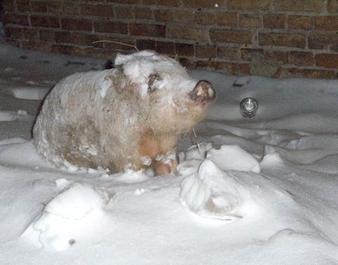 Tada paskuj, kai visi jau susirūpino - kieno ten pašras sušalęs guli, tas vėl pradingo. O vieną rytą ėjo meras į darbą su seniūnu, o gi žiūri - miestelio aikštėje, paminklo vietoje paršas apšalęs šypsosi! Tada pakvietė mentus, gaisrininkus ir korespondentus, nusifotografavo visi ten, paspardė paršą, gėlėmis apdėjo ir ėmė piktdžiugiškai kikenti. Tai tada tas mentas, kurio paršas buvo, labai susinervijo, susisielojo, nes tik paskuj apsižiūrėjo, kad ten jo paršas miestelio veidą reprezentuoja...