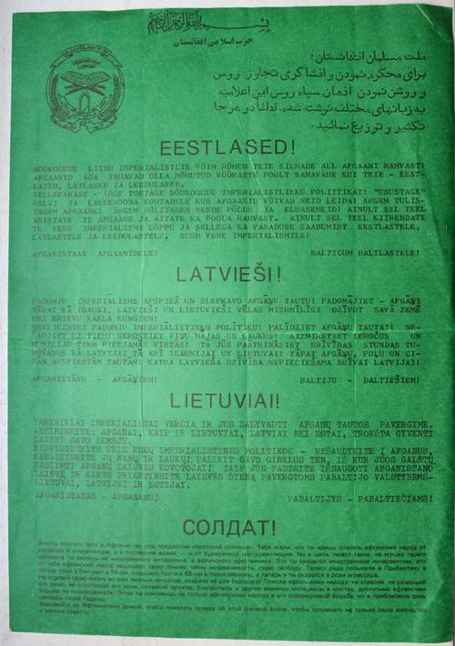 Tokius atsišaukimus afganistano gyventojai dalino mūsų kariams, pakliuvusiems į tą svetimą karą...