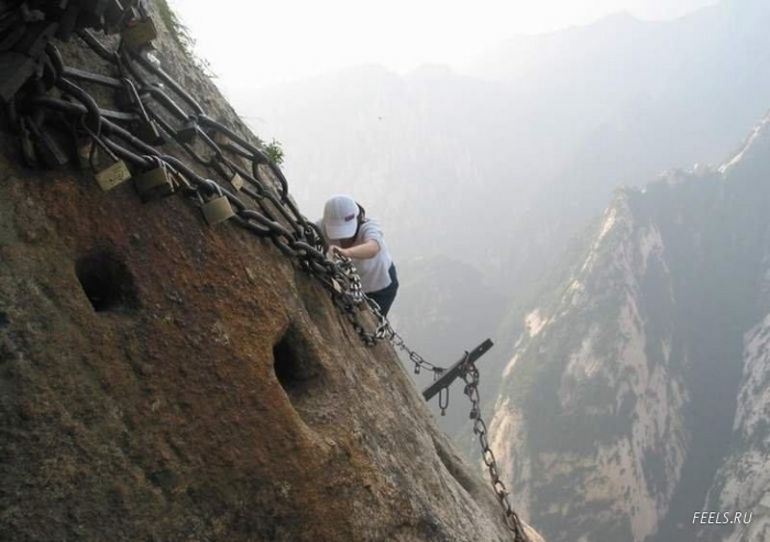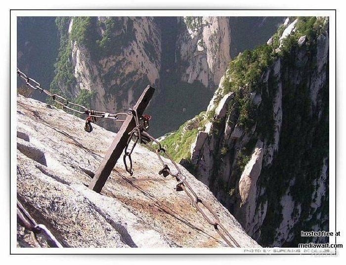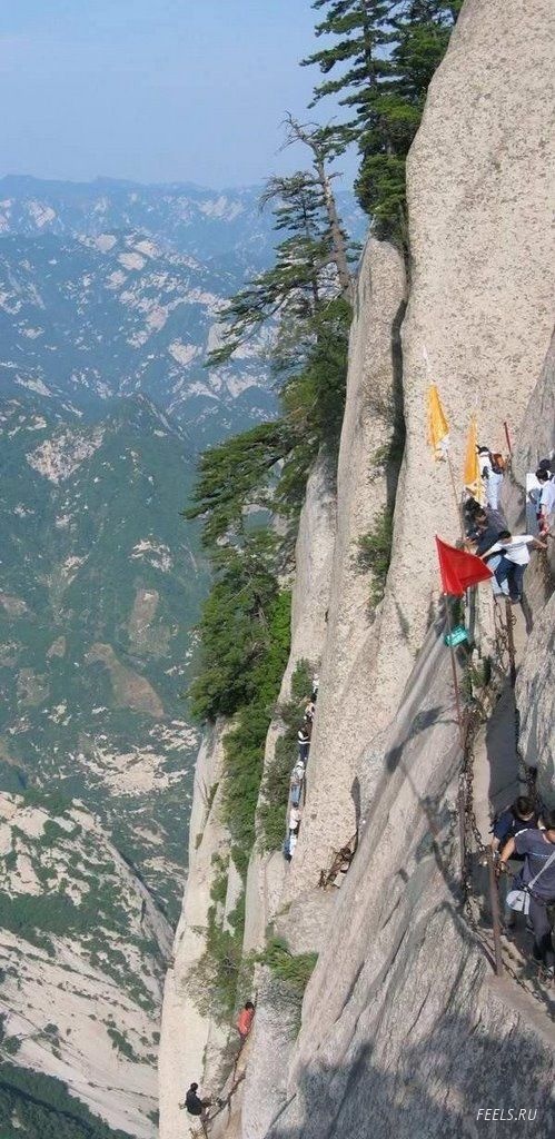 Huashan Mountian is located some 240 kilometers away from Xi’an, approximately a two and half hours drive. It is one of the five sacred mountains in China. Huashan Mountain is well-known for its sheer cliffs and plunging ravines. It is the most dangerous mountain in China for climbers.