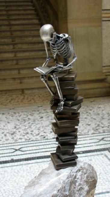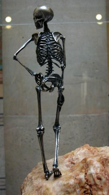 O man pasisekė taip, kad skeletas prieš akis stovėjo , kol baigiau mokyklą, kabinete, teko į jį žiūrėtis..Vis tai žarnos, tai kepenys iškrisdavo[ surenkamas toks buvo] ir reikėdavo sukabint į vietą.... :)