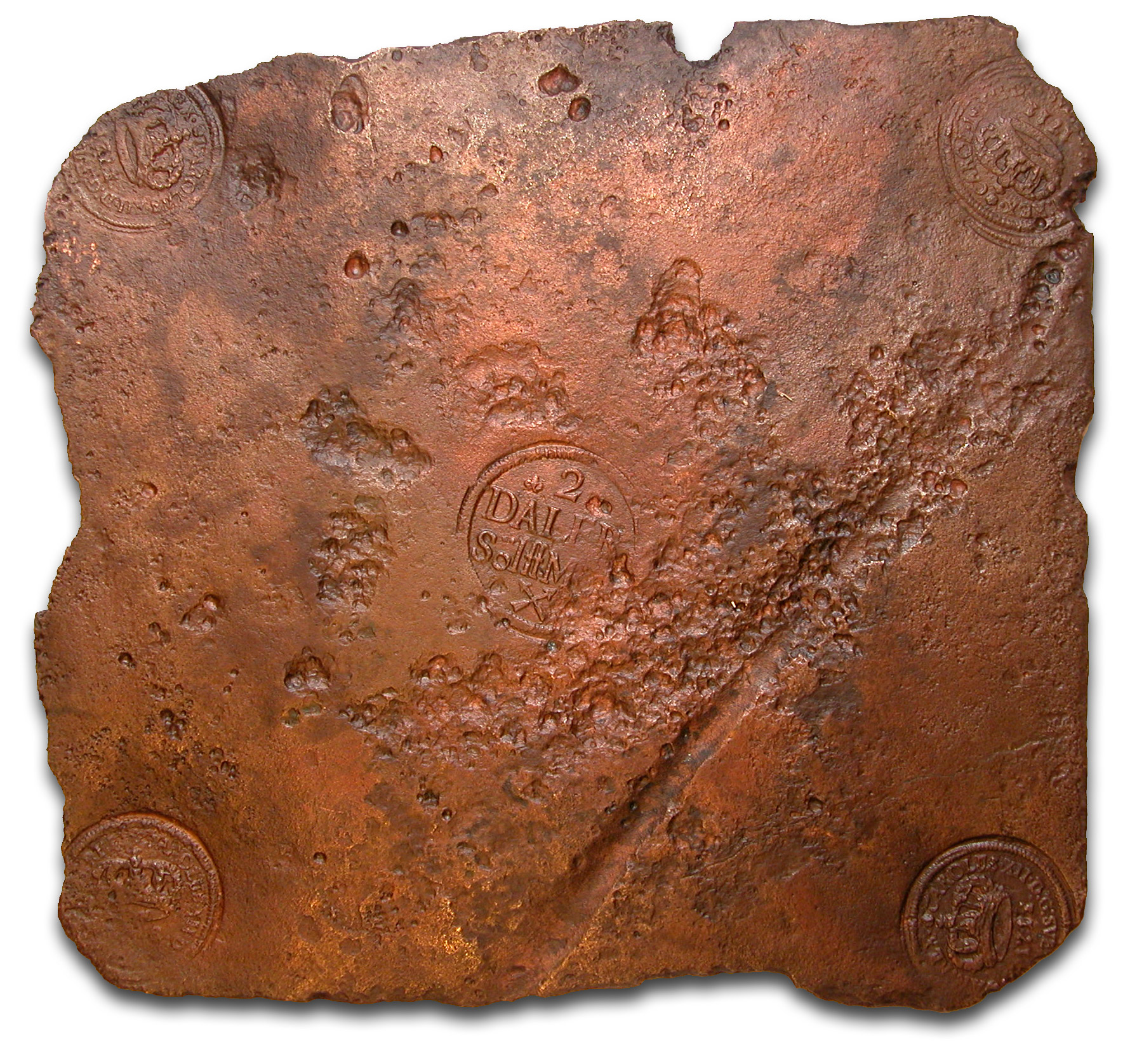 Žemiau - Rusijos imperatorienės Kotrynos I (Jekaterinos I) varinis rublis, sveriantis pusantro kilogramo, 1726 metai.