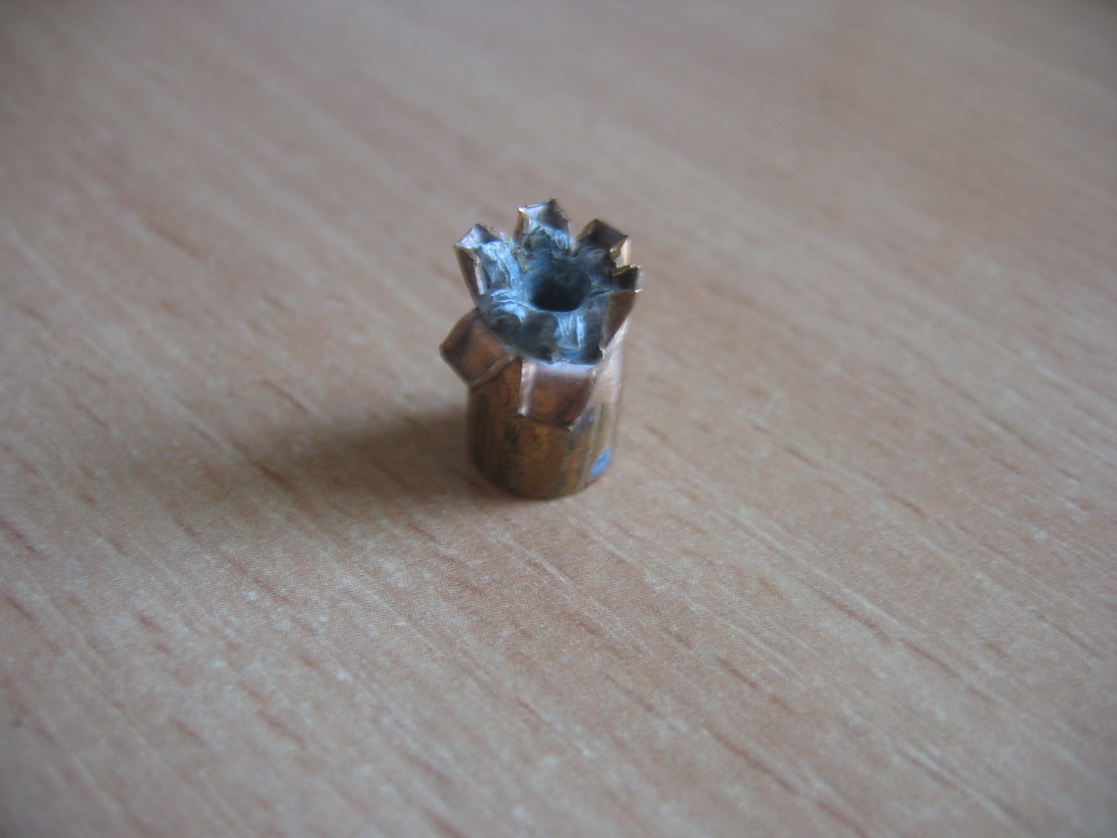 Failo aprašymas: pirmą kartą matau taip deformuotą ekspansyvią kulką.. tikriausiai turėjo būti keistas, neįprastas susidūrimo kampas..