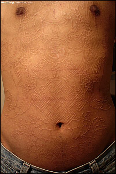 Taigi, aptikau tokį puslapį - http://www.bmezine.com/ (silpnų nervų žmonės, neikit ten!), kuriame yra nemažai nuotraukų apie įvairiarūšes tatuiruotes. Keletą nuotraukų iš ten, kaip pavyzdį, įdedu čia.