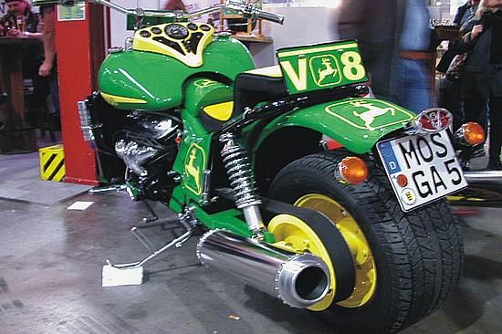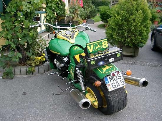 John Deere - tai viena žymiausių pasaulyje traktorių gamybos firmų (be juokų). Pagrindinė produkcija - traktoriai, žemkasės, kombainai, sėjamosios, žoliapjovės ir t.t., o kaip matome iš šių nuotraukų - dar ir motociklai - choperiai (tiesa, pavieniai).