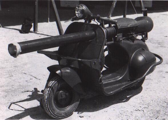 Po Antrojo Pasaulinio karo prancūzai veik neturėjo pinigų ginklavimuisi, tačiau paveldėjo didžiulį kiekį senų ginklų, tarp jų - ir lengvų beatatrankių pabūklų. Taigi, norėdami didinti savo įtaką, ypač - kolonijose, ėmė ginkluotis kiek įmanoma smarkiau, bet kartu - ir pigiau. Bene tobuliausiu tokiu išradimu tapo Vespa skuteriai (motoroleriai), apginkluoti beatatrankiu 75 milimetrų pabūklu, kurio galios pakako, norint numušti praktiškai bet kokį tanką. Naujasis ginklas buvo pavadintas "ACMA Troupes Aeról Portées Mle. 56" ir skirtas oro desantininkams - išmestas iš lėktuvo, jis būdavo surenkamas iš kelių dalių, o paskui - jį buvo galima ir naudoti. Pilnas šio "tanko" komplektas būdavo sudarytas iš kelių dalių, nuleidžiamų atskirais parašiutais - du žmonės (įgula), pabūklas, sviedinių komplektas, ir du motoroleriai. Vienas motoroleris turėjo vežti sviedinius, o kitas - pabūklą, tiesa, greitai buvo įsitikinta, kad pabūklas bei sviediniai gali tilpti ir ant vieno tokio skuterio.