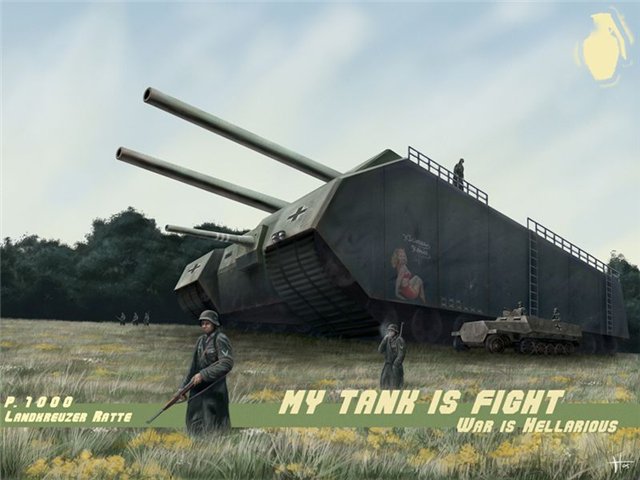 Taigi, išskirtinė tankų mėgėjams tema - tai vokiečių supertankų projektai. Pradėkim gal nuo paties wundersturmmonsterpanzershutzwaffe - Monsterpanzer P.1000 Landkreuzer Ratte projekto. Šitas monstras buvo suprojektuotas, kaip 1000 tonų tankas, turintis dvivamzdį laivinį pabūklą. Įgula - kelios dešimtys žmonių. Šarvas - pusmetrio storio, o vietomis - dar storesnis. Žodžiu, toks monstras, kokio pasaulis dar nematė.