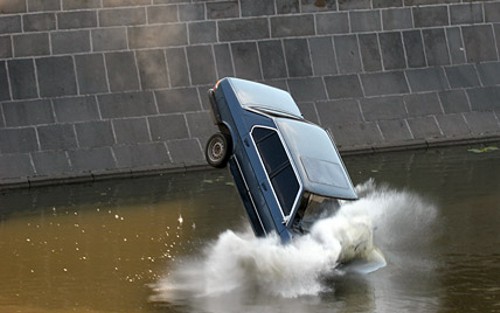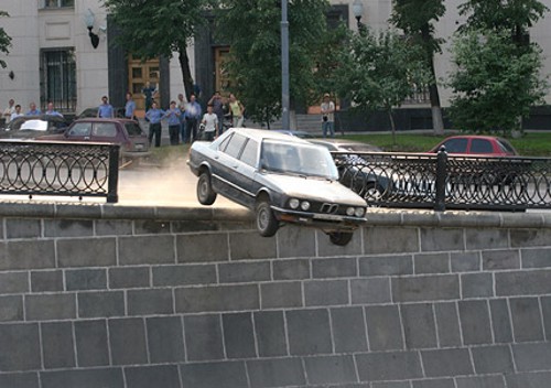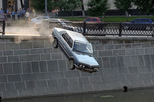 Taigi, milicininkai linksminasi kažkokiame Rusijos mieste (Maskvoje?). Užrėmė greičio pedalą ir paleido senuką BMW į vandenį.