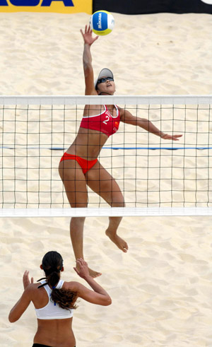 2004 m. Atėnų Olimpinių žaidynių čempionės amerikos tinklininkės - Kerri Walsh bei Misty May