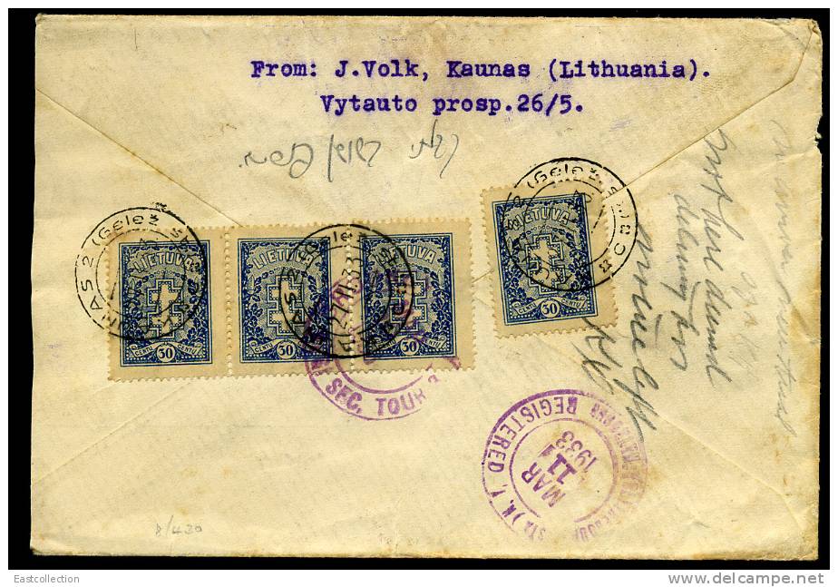 Štai koks gražus falsifikatas dabar siūlomas! Sukčiai Karaliaučiuje (ar vėliau JAV ?) netgi registracijos antspaudą pagamino, kurio tikro man lyg ir neteko matyti (nors, aišku, 1927 metais kažkoks tikras registracijos antspaudas buvo naudojamas). Ko gero - šį voką ir parduos už aukštą kainą, nes filatelinius žurnalus dabar mažai kas skaito...