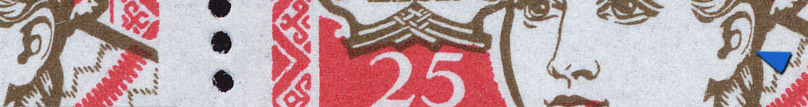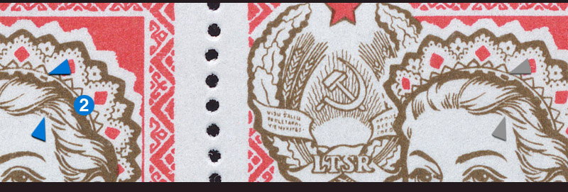 Tamsi deme ornamente ant centrinio lapelio ir du juodi taskai ant kitu soniniu irgi vienintelis zenklas per visa lapa.