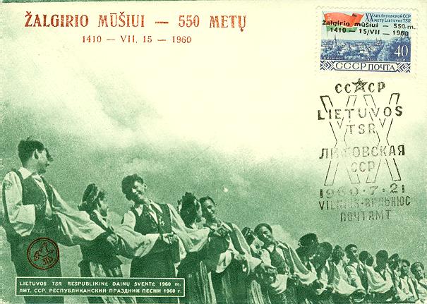 Taip pat toje pačioje Durbės stovykloje, minėtas ir Žalgirio mūšio jubiliejus (kaip žinia skirtumas tarp jubiliejų vos kelios dienos). Vėlgi buvo pagaminti atitinkami perspaudai vokams ir TSRS pašto ženklams Lietuvos tematika, proginis antspaudas ir ženklas, kuriais buvo žymimi JTP iniciatyva kurti vokai ir kaip suprantu kiti vokai Lietuvos tematika. Įdomu, kad vėlgi matyti sėkmingai paštą perėję vokai su TSRS pašto ženklais, ant kurių yra JTP perspaudai.