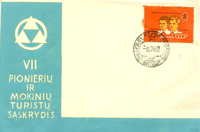 Jaunųjų turistų pašto medžiagą sąlyginai būtų galima grupuoti į pačius turistinius vokus (jų, pradedant 1958 metais, buvo išleista daugiausia); suvenyrinius ženklus - lipdukus ir kaip visos tos medžiagos viršūnę - užspaudus ant sovietinių ženklų. Pradžioje nedideliais tiražais buvo leidžiami gana kukliai atrodantys vokai, kaip taisyklė, su jų pavadinimais tik lietuvių kalba. Kas įdomu, Lietuvos SSR ryšių ministerijos tuo metu leidžiami neženkliniai vokai būdavo su tekstais lietuvių bei rusų kalbomis. O kartais - vien tik rusų kalba.