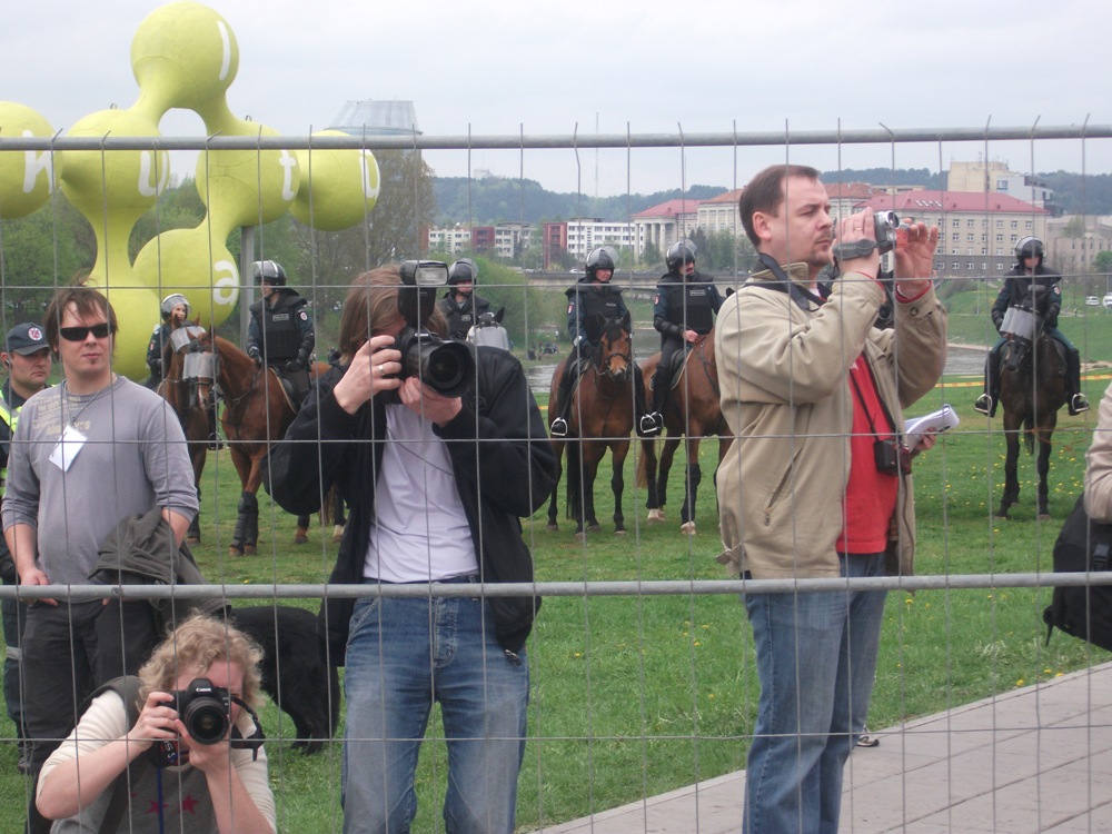 Štai, buvau, fotografavau, gėjų "parado" nemačiau. Negaliu tai kas buvo pavadinti "paradų", todėl ir rašau kabutėse. Koks buvo to parado" tikslas? Pražygiuoti ar gauti leidimą? Pagal tai ką aš mačiau gėjų tikslas buvo tik gauti leidimą, nes parado NIEKAS IŠSKYRUS JŲ PAČIŲ NEMATĖ. O gal čia mūsų policiją persistengė? Nors aš atėjau pažiūrėti, pafotografuoti, bet be gėjų pakvietimo niekas mane niekur nepraleido. Nuolat per matiugalniką buvo kartojama: "peržengus ar pažeidus stop justą asmuo bus baudžiamas, gali būti panaudotos ašarinės dujos, elektrošokas, šunys ir kitos panašios priemones". Kaip ir visi stovėjau už tvoros apsuptas policijos, kavalerijos, spec. pajėgų. Labiausiai mane užmušė tai kad visi stebėtojai, policininkai, žurnalistai žiūrėjo į visus atėjusius kaip į kokius raupsuotuosius. Ir kodėl? Todėl kad atėjome pažiūrėti? O dabar prašome pažiūrėti kaip ten buvo. Iki pabaigos nebuvau, kai prasidėjo rimtesni neramumai. Tiesiog nusibodo stovėti ir žiūrėti i policininkus. :D
