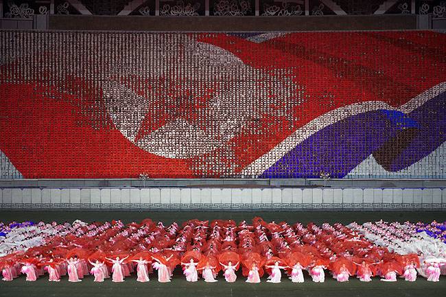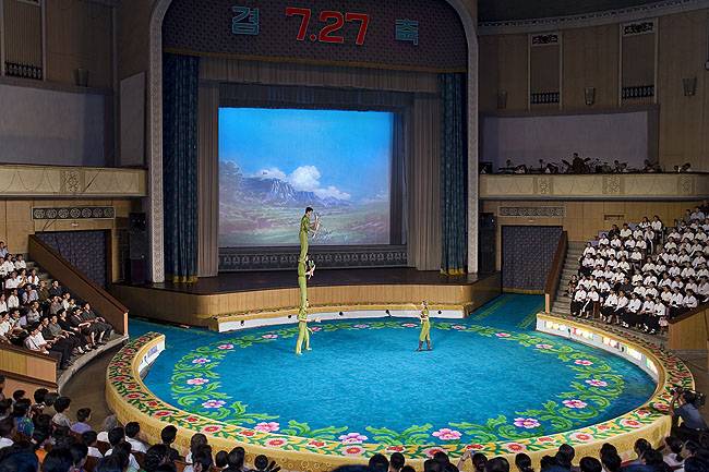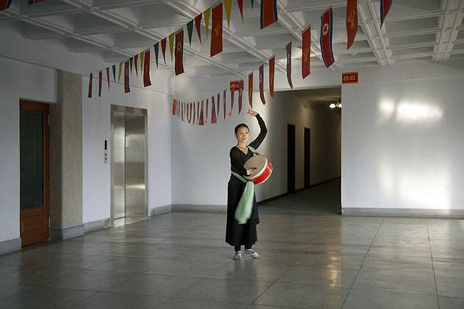Šiose nuotraukose - paradinis Šiaurės Korėjos veidas. Čia jūs nepamatysite tuščių parduotuvių, nepastebėsite, kad daugiaaukščiai gyvenamieji namai neturi liftų, gal net neatkreipsite dėmesio į tai, kad Pchenjano - didžiausio šalies miesto gatvės visai tuščios: nėra pinigų įsigyti automobiliams, nėra net degalų toms mašinoms, kurios yra. Niekas nepasakys jums, kad šalis jau kelioliką metų badauja, visas lėšas teskirdama ginklavimuisi. Nepastebėsite ir fotografus visur lydinčių saugumiečių. Ir juo labiau nepamatysite kraštutinės socialinės nelygybės - komunistų vadams - viskas, likusiems - garbinga teise buti darbo liaudimi.