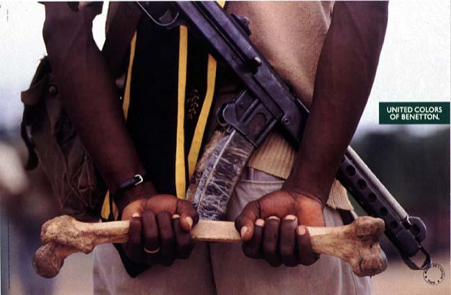 Taigi, apie 1990 ėmė rastis reklamos, kurias daugelio šalių leidiniai tiesiog atsisakydavo spausdinti - ir išmatos, ir lavonai, smurtas, kraujas, narkotikai - viskas, kas tik gali sukrėsti. Itin skandalingai pagarsėjo reklama, kurioje buvo pavaizduoti žuvusio bosnių kareivio drabužiai - jo tėvą firmos agentai įtikino, kad tai bus reklama, rodanti karo baisybes, skatinanti taiką. Rezultate reklama gavosi tik apie "United Colors of Benetton". Gan panaši istorija pasikartojo ir su David Kirby, mirusio nuo AIDS šeima - mirštančio vyruko nuotrauka tapo dar vienu "United Colors of Benetton" reklaminiu veidu.