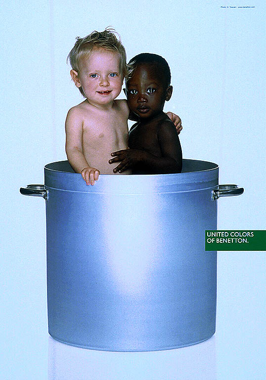 Ką dar "gero" galima pamatyti šios firmos reklamose? Nuteistus mirties bausme nusikaltėlius, pabėgėlius, kurie, rizikuodami gyvybe, ropščiasi iš laivo, Afrikos kareivį, rankose laikantį žmogaus šlaunikaulį, panaudotus ir nepanaudotus prezervatyvus, lytinius organus, etc.... Ar tokia reklama tikrai padeda visuomenei? Firmos atstovai kalba, kad jie taip atkreipia dėmesį į socialines problemas, nors akivaizdu, kad firma tik naudojasi didėjančiu visuomenės dėmesiu socialinėms problemoms. O ar tai padeda pačiai firmai? Gal kuriam laikui ir padėjo, tačiau per paskutinius 10 metų "United Colors of Benetton" akcijų vertė nukrito jau keletą kartų.