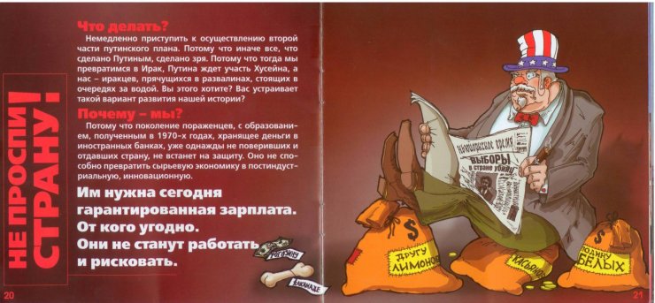 Vienam, taip pat rusų , tinklalapyje, opoziciniame, skaičiau vat apie tą Limonovą, kurio pavardė užrašyta ant maišo, pas Tave parodytuose lankstinukuose.