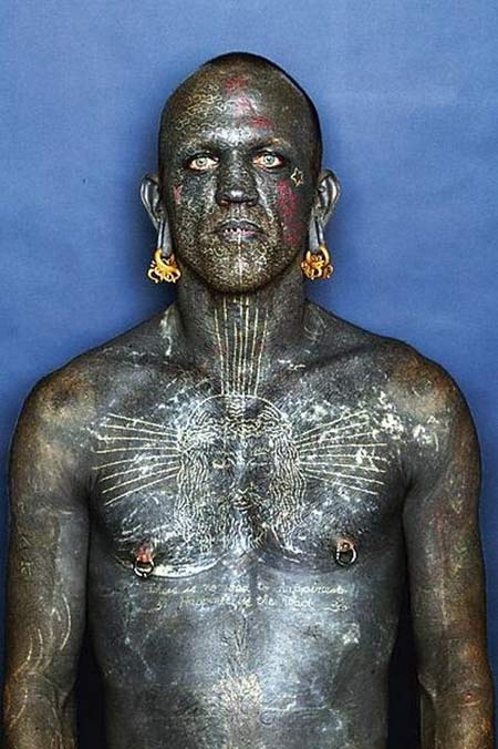 Daugiau, nei 99 procentus kūno išsitatuiravęs vyriškis iš Guiness (Gineso) rekordų knygos išstūmė iki tol te buvusius veikėjus, kurių pravardės The Great Omi bei The Leppard Man.