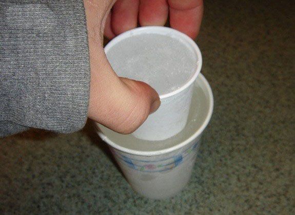 Pats receptas labai paprastas: Imame popierinę ar plastikinę stiklinėlę, į ją įpilame vandens, į ją įdedame kitą, mažesnę vandeniu užpildytą stiklinėlę. Pastaroji pirmojoje stiklinėje plaukia, nenugrimzdama. Viską padedame į šaldiklį, paskui ištraukiame jau užšalusias stiklinytes. Mažas stiklinėles iškrapštome, iš didesnių išimame ledukus. Kad tai padaryti būtų lengviau, galime aplieti šiltu vandeniu.