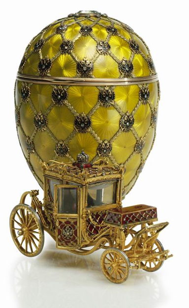 Vienas Faberže kiaušinių, iš krūvos dovanotų caro šeimai.