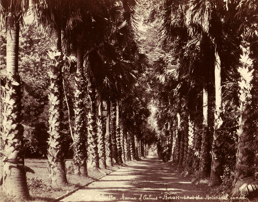 Kalkutos Botanikos sodo palmių alėja, XIX amžiaus pabaiga.
