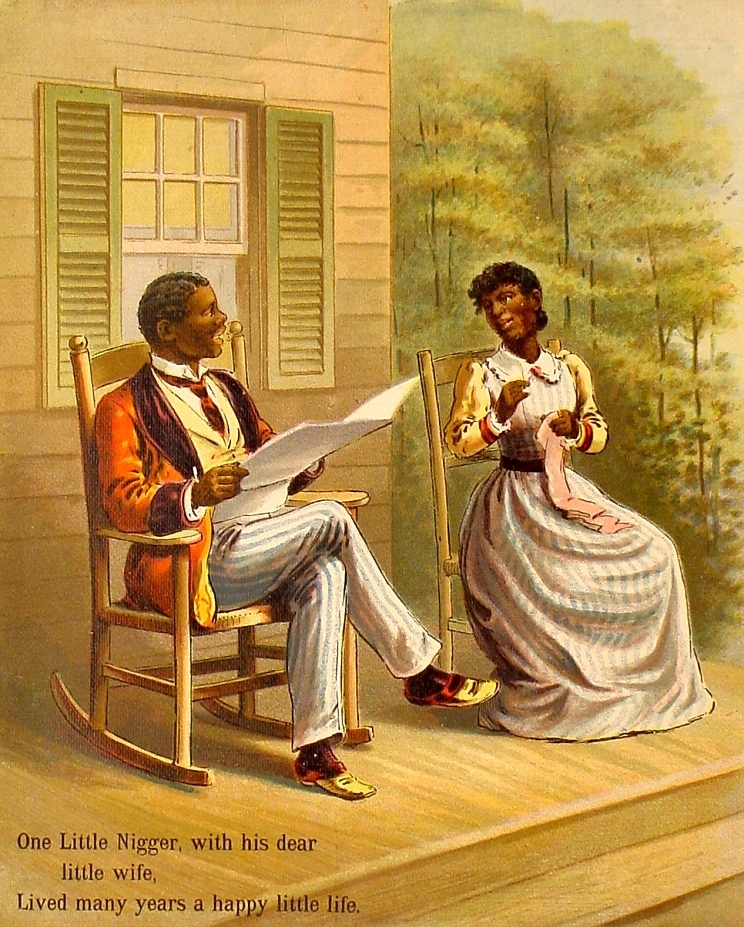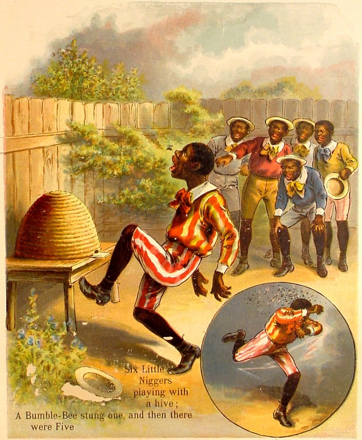 Iliustracijos (ir natos) iš knygos "10 mažų negriukų" ("10 little niggers"), išleistos JAV, 1894 metais.