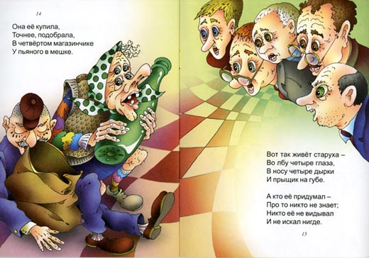 Gyveno senelė su 4 akim ir 4 skylėm nosyje šiaudinėj trobelėj su karve, pririšta prie plastikinio kamino.Karvė, vardu Galina Blanka, koncertavo scenoje , o jai plojo 14 kumelių, davė 3 litrus pieno, kurio senutei buvo į valias. Senele pienu plovė langus, padarytus iš senų skudurų ir vėliavėlių.Turėjo sodą, kuriame augino visokias piktžoles, ravėjo pomidorus, morkas ir kitas daržoves lauk.Maudėsi senelė Sprait ar Fantos butelyje su skalbimo milteliais, o tą butelį pavogė iš girtuoklio maišo.