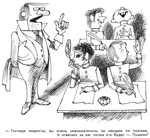 -Ponai liceistai, jūs labai neatidūs poetikos pamokose!O atsakys už viską kas?Puškinas?