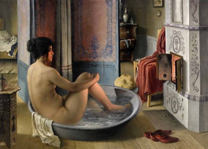 Failo aprašymas: Žaismingas paveikslas. Ilgas kelias iki jakuzi Reinchold Callmander(1844-1922)