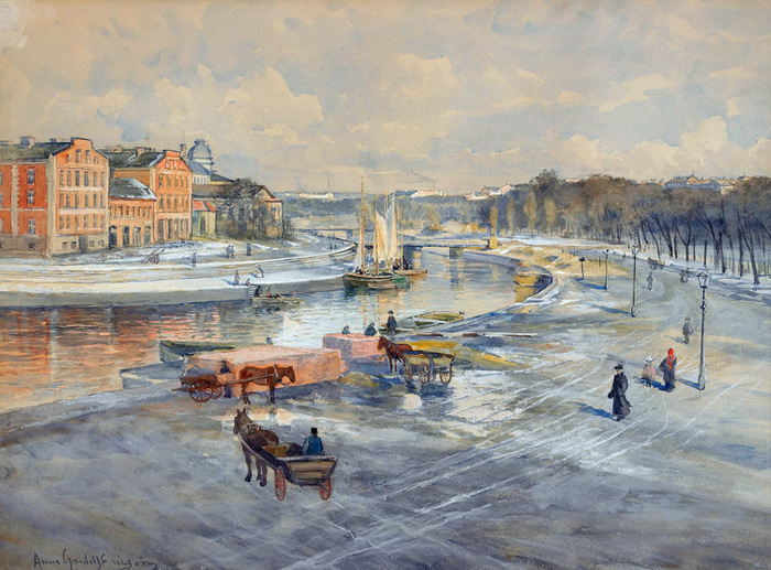 Failo aprašymas: Anna Palm (1859-1924).Aukcione pristatomi keli jos Stokholmo vaizdai, čia tik iškarpa, suspaudus niekas nesigauna.