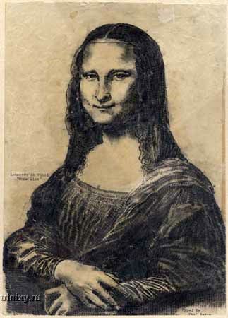 Kai pastebėjau paveikslus internete, anksčiau nebuvau mačiusi, patraukė jie pirma tuo, kad atlikti kitaip,kažkaip senoviškai, maniau, kad anglimi ar pieštuku, paskui įsižiūrėjau, kad nėra nė vienos lenktos linijos.O paskui beliko stebėtis , kiek ženkliukų, kokiais atstumais reikėjo dėlioti, kad būtų sukurtas peizažas, o dar labiau- portretas! :) :o