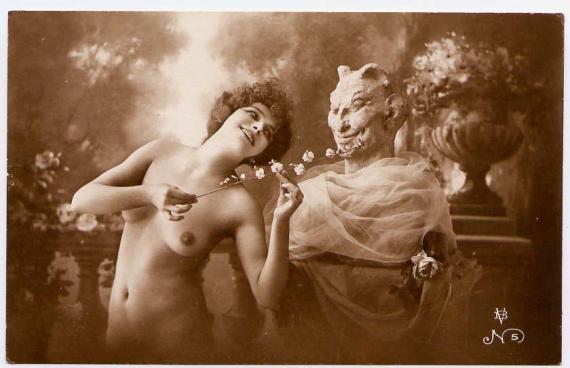 Tarp kitko, keliose fotografijose esanti poklaikio ožiško senio skulptūra - tai tam tikras semantinis pranešimas, rodantis šių nuotraukų tikrąją, visai ne nekaltą esmę: anas senis - tai gašlumo ir ištvirkavimo dievas Panas, dar ankstyvojoje krikščionybėje giliai sutapatintas su Šėtonu.
