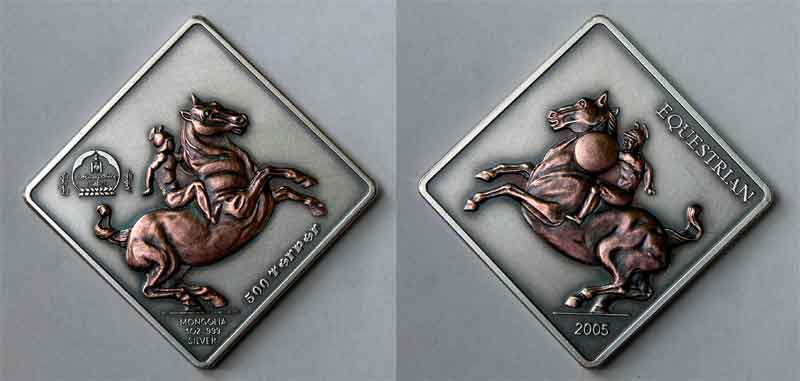 Taigi čia Mongolija, ši moneta ne daug kuo skirias nuo daugelio kitų jų monetų, ar aš dar kažko nepastebėjau? Moneta skirta Nikolajaus II 90 mirties metinėms (arba 140-osioms gimimo :) ), paimk vos ne bet kurią Mongolijos proginę monetą, jose pilna kokių nors minėjimų, kurie vargiai atrodo tinkami minėti Mongolijos monetose. O apie "modernų" jų grožį (nors ne gal ir gražu, bet tiesiog kvaila) neverta net kalbėt, geriau pažiūrėti: