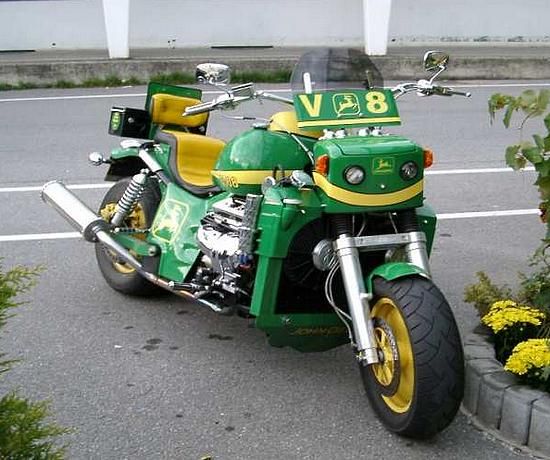 John Deere - tai viena žymiausių pasaulyje traktorių gamybos firmų (be juokų). Pagrindinė produkcija - traktoriai, žemkasės, kombainai, sėjamosios, žoliapjovės ir t.t., o kaip matome iš šių nuotraukų - dar ir motociklai - choperiai (tiesa, pavieniai).