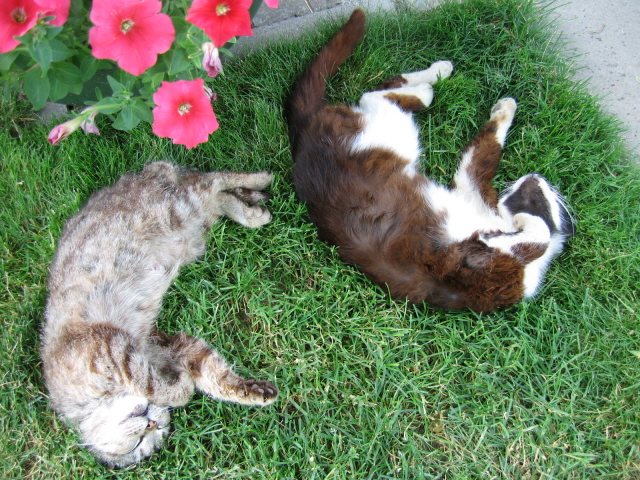 Kokios grazios....katytės:))...Ir kaip skaniai...miega...lygiai kaip maži..vaikai...Net miegas suėmė:)