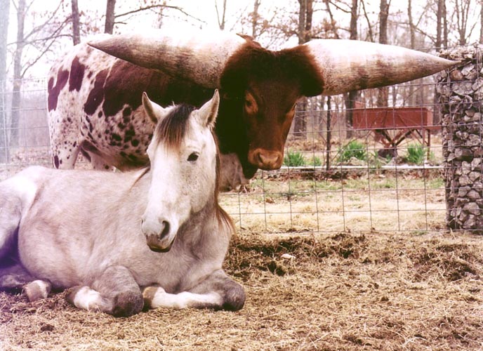 Štai toks, neįtikėtinai raguotas bulius gyvena kažkur Jungtinėse Valstijose. Sako, šio buliaus ragai - patys didžiausi pasaulyje. Kas jam užėjo, kad jis taip apsiragavo, neaišku... Karvės, matyt, labai neištikimos...