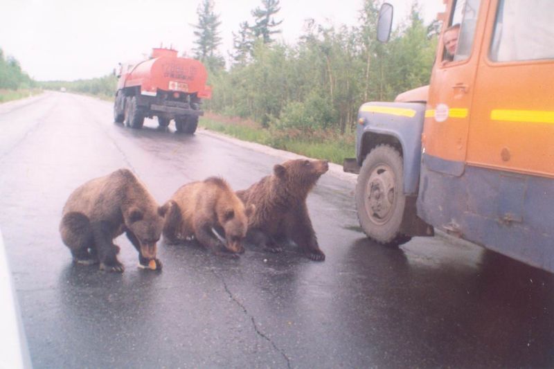 Sibiro valdininkai jau maždaug 50 metų įspėja stovyklautojus, turistus, medžiotojus ir kitus žmones nieku gyvu nešerti meškų jokiais skanumynais, nepalikinėti gamtoje maisto atliekų, tačiau tai nekeičia situacijos: didžiulė dalis meškų jau priprato prie žmonių ir, negavę išpirkos saldumynais, kai kada tiesiog sumaitoja autobusus ar sunkvežimius, 5-10cm ilgio nagais perplėšti automobilio skardas šiems gyvūnams - vienas juokas.