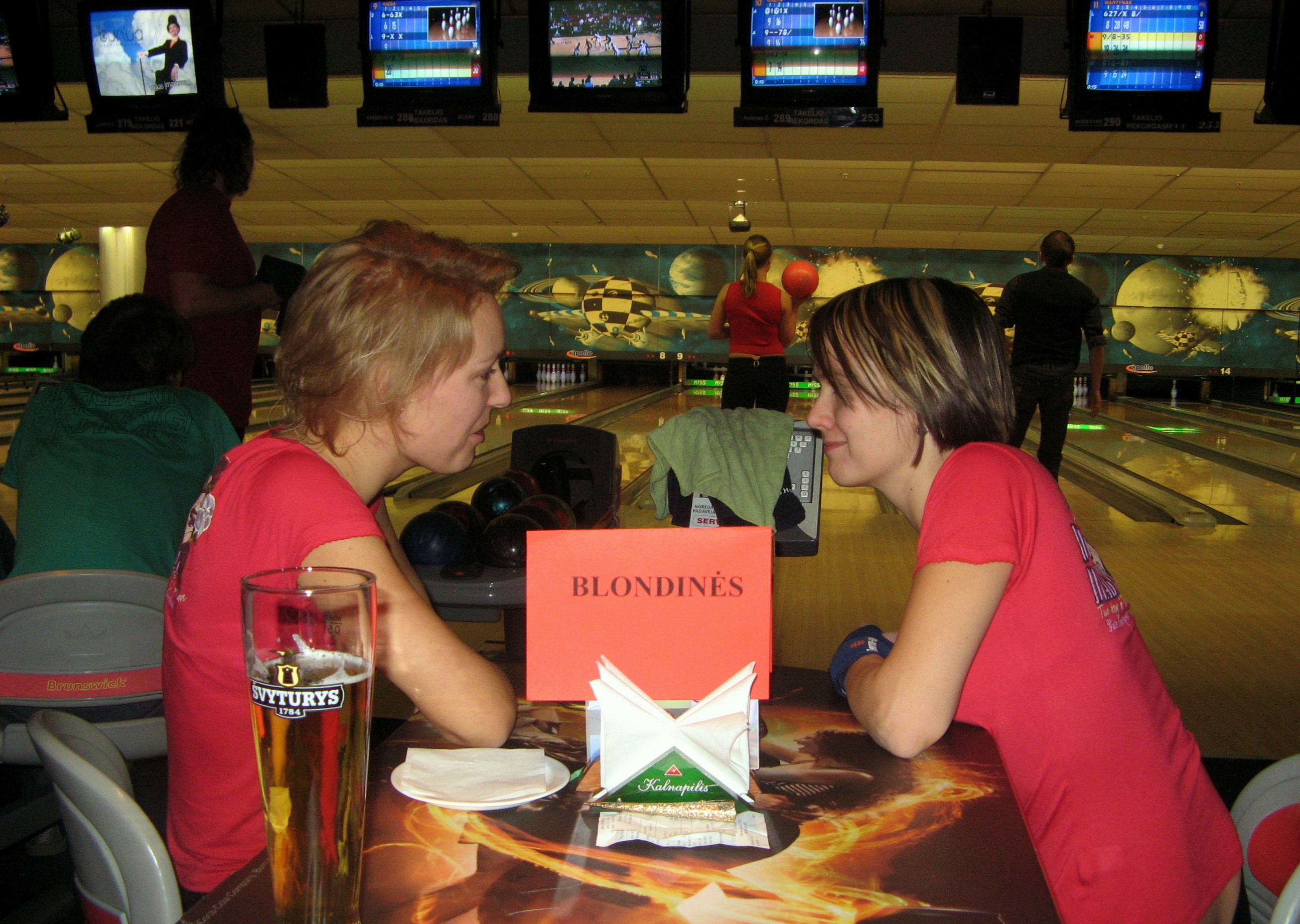 Trijų (viena taikos į kėglius) :) Aš ta tamsiausia blondinė :D
