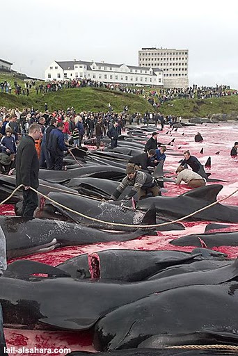 Kasmet Danijai priklausančiose Farerų salose vyksta “šventė”, vietinių gyventojų vadinama “Grindadrap”. “Šventės” akimirkos – nuotraukose, kurių ir komemtuoti nepatogu. Jei būtybės, vadinamos žmonėmis, gali šitaip bėgėdiškai žudyti mielus, protingus, žmonėmis pasitikinčius delfinus, juos reikėtų statyti kažkur prie krokodilų. Bet tikrai ne prie mąstančių ar ką nors jaučiančių šios planetos gyventojų.