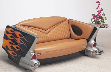 Tokias sofas iš senų mašinų daro kažkokia firma, nežinau kokia. Sako, tokios sofos brangios, ale kainos jų irgi nežinau.
