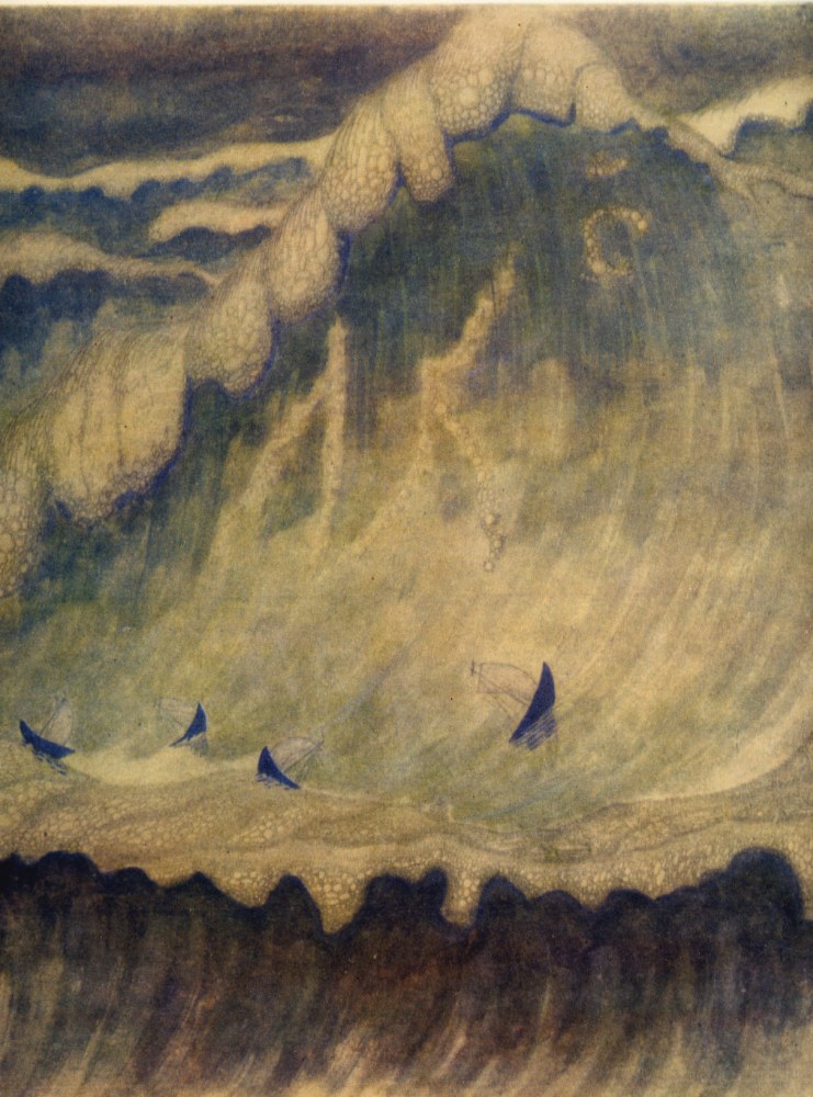 Bet jūra, kaip žmogaus gyvenimas, permaininga.Virš jos susitelkė audros debesys, susiūbavo vandenys, pakilo milžiniška banga(Finale,3 dalis).Gal ji pagriebs trapius laivelius, nublokš juos į jūros platybes, gal, užgriuvusi savo grėsmingu svoriu, palaidos gelmėse, o gal jie, žmogaus rankų kūriniai, atlaikys stichijos įtūžį.