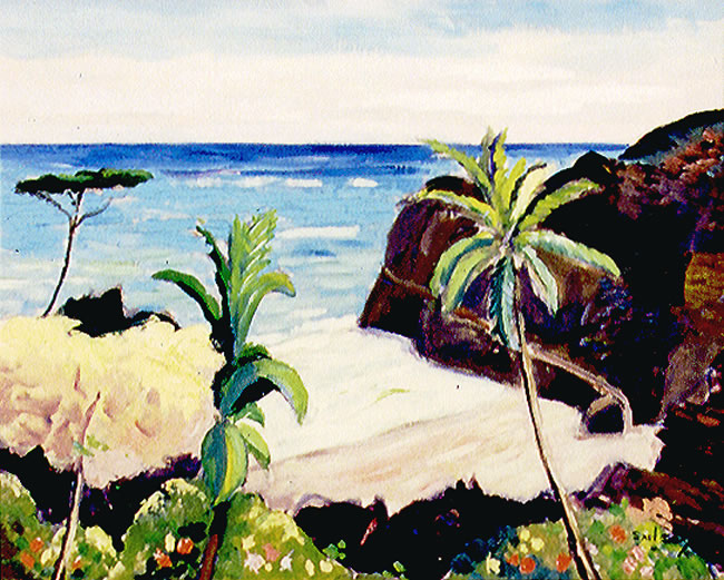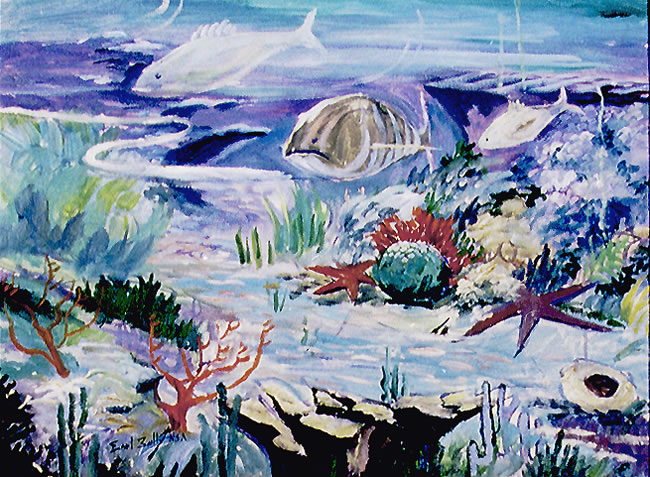 Earl Bailly(1903-1977)-kanadietis,kuris visa savo gyvenima praleido piesdamas jura.O piese jis teptuka laikydamas burnoje,nes dar vaikysteje susirgo sunkia polio liga..