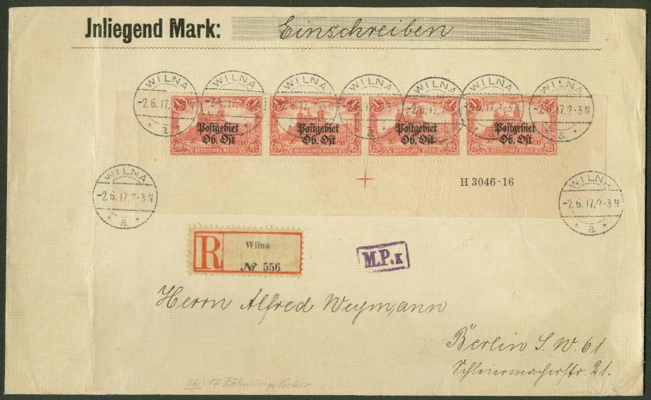 Pardavejas raso kad ant voko zenklai Mi#12A (26:17). Taip negali buti, nes Mi12A islesitas kaip reicho zenklas 1918.1.30 ir tik poto perspauduotas, o antspaudai ant voko 1917.6.2 , taigi ant voko zenklai Mi12B (25:17), kurie isleisti 1915.9.17 ir yra gerokai pigesnis variantas. :!: